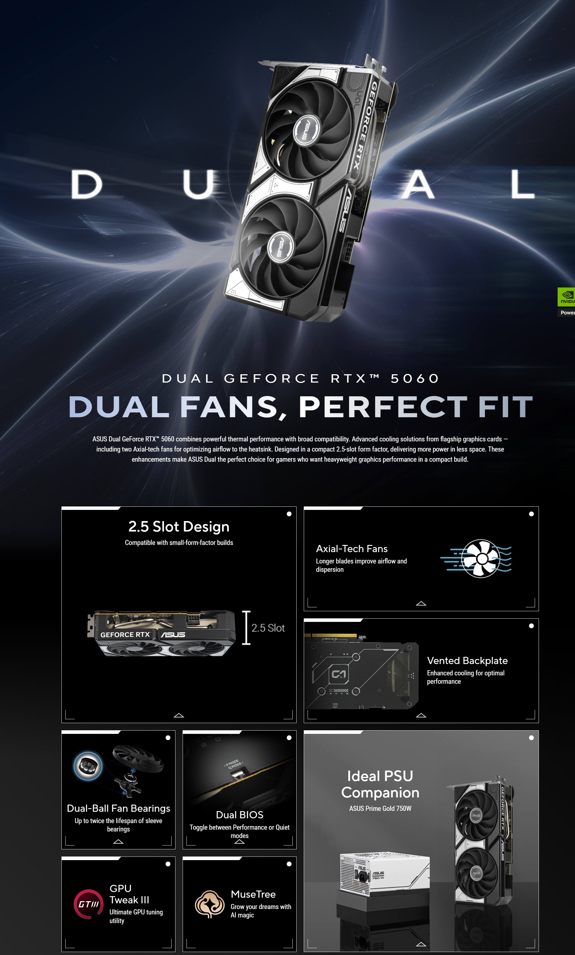 Asus Dual GeForce RTX 5060 8GB GDDR7 OC Edition Graphics Card
