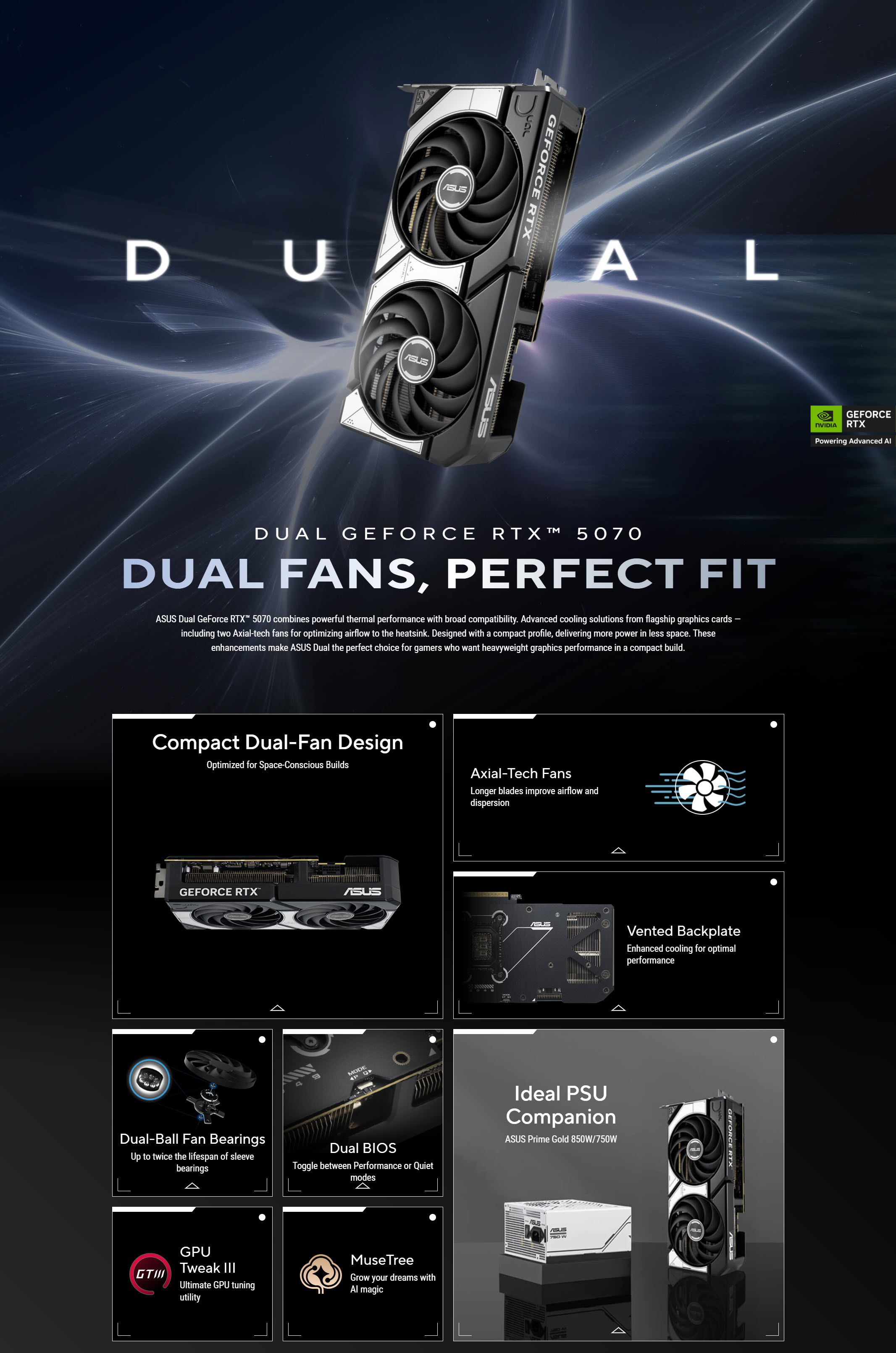 ASUS Dual GeForce RTX 5070 12GB GDDR7 OC Edition Gaming Graphics Card