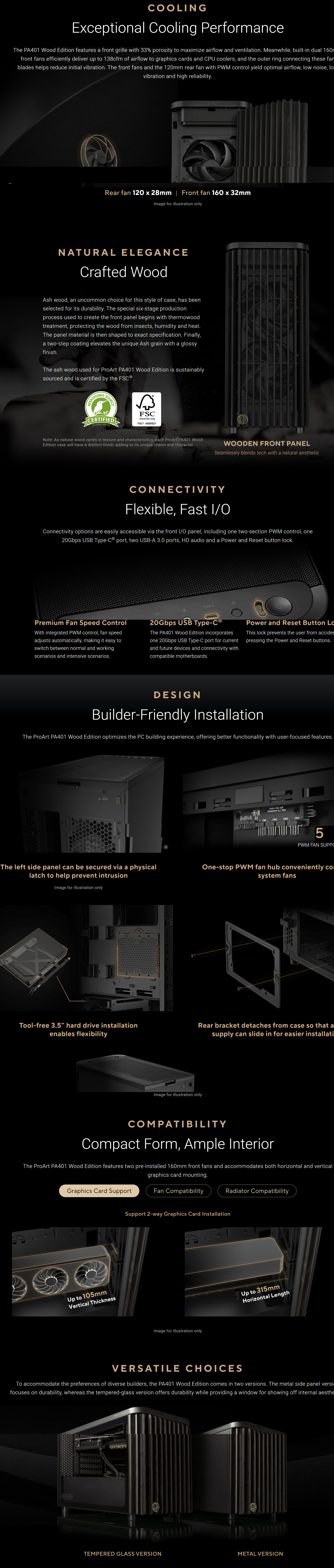 ASUS ProArt PA401 Wood Edition Black Tempered Glass Mid Tower PC Case – Black