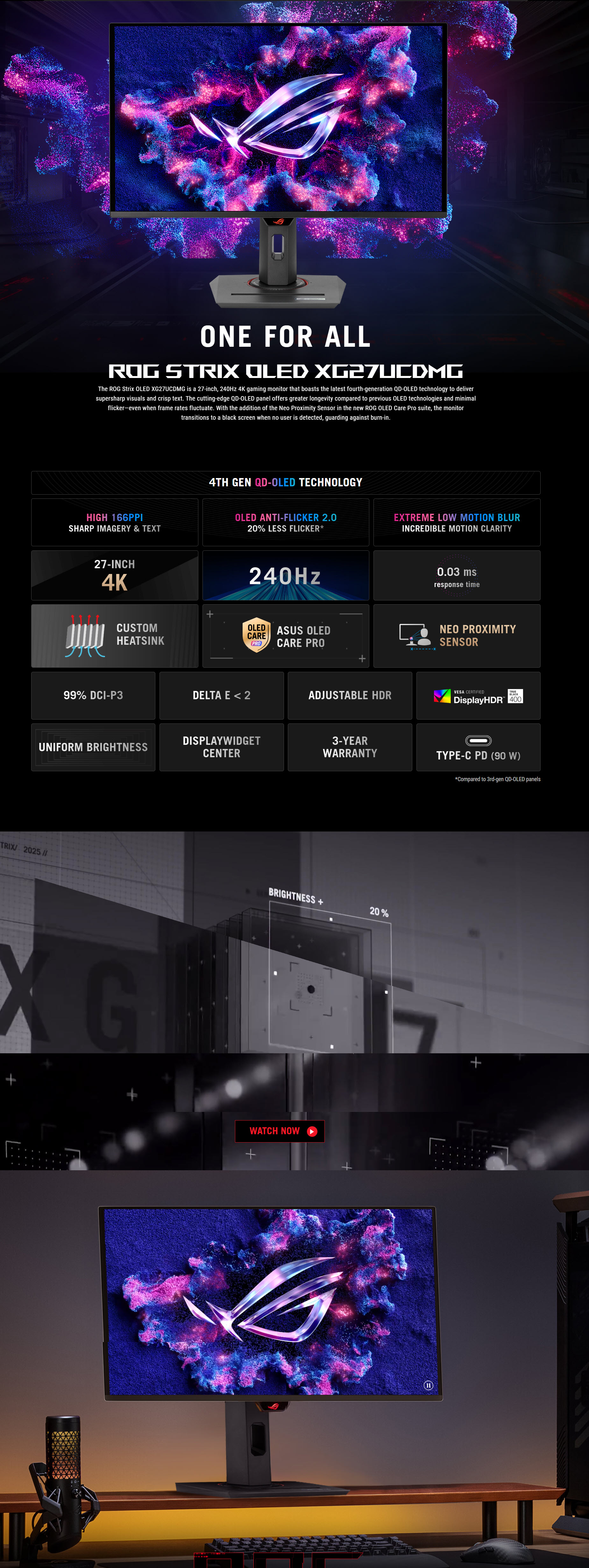 • Latest 4th-gen QD-OLED technology delivers sharper imagery and crystal-clear text, a longer lifespan over previous-gen OLEDs
