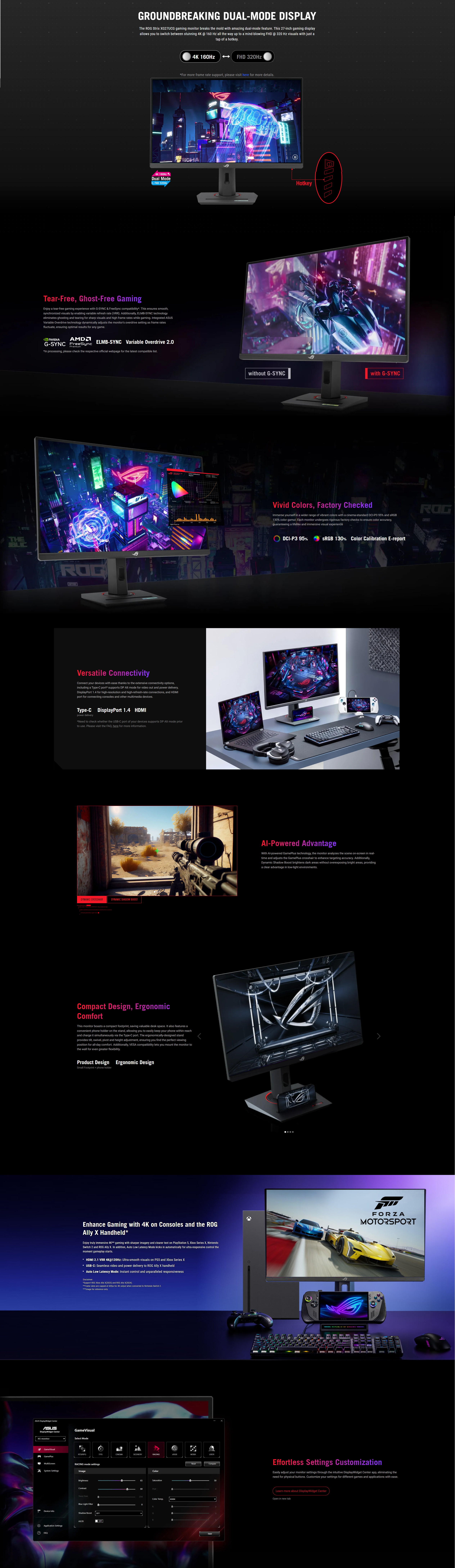 • 27-inch 4K (3840 x 2160) gaming monitor with versatile dual mode (4K @ 160 Hz or FHD @ 320 Hz)