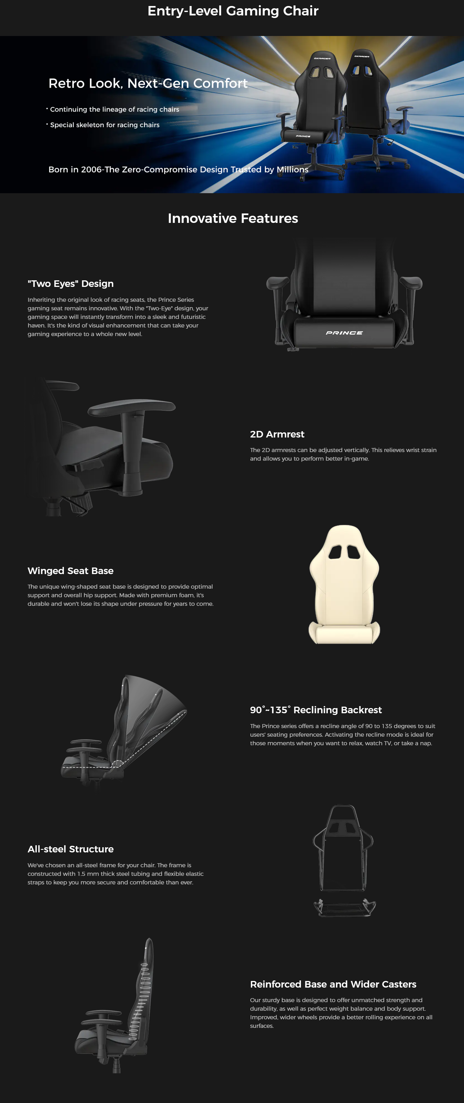 DXRacer Prince Series GC-LPF24LTC-NW Large Size Gaming Chair White/Black