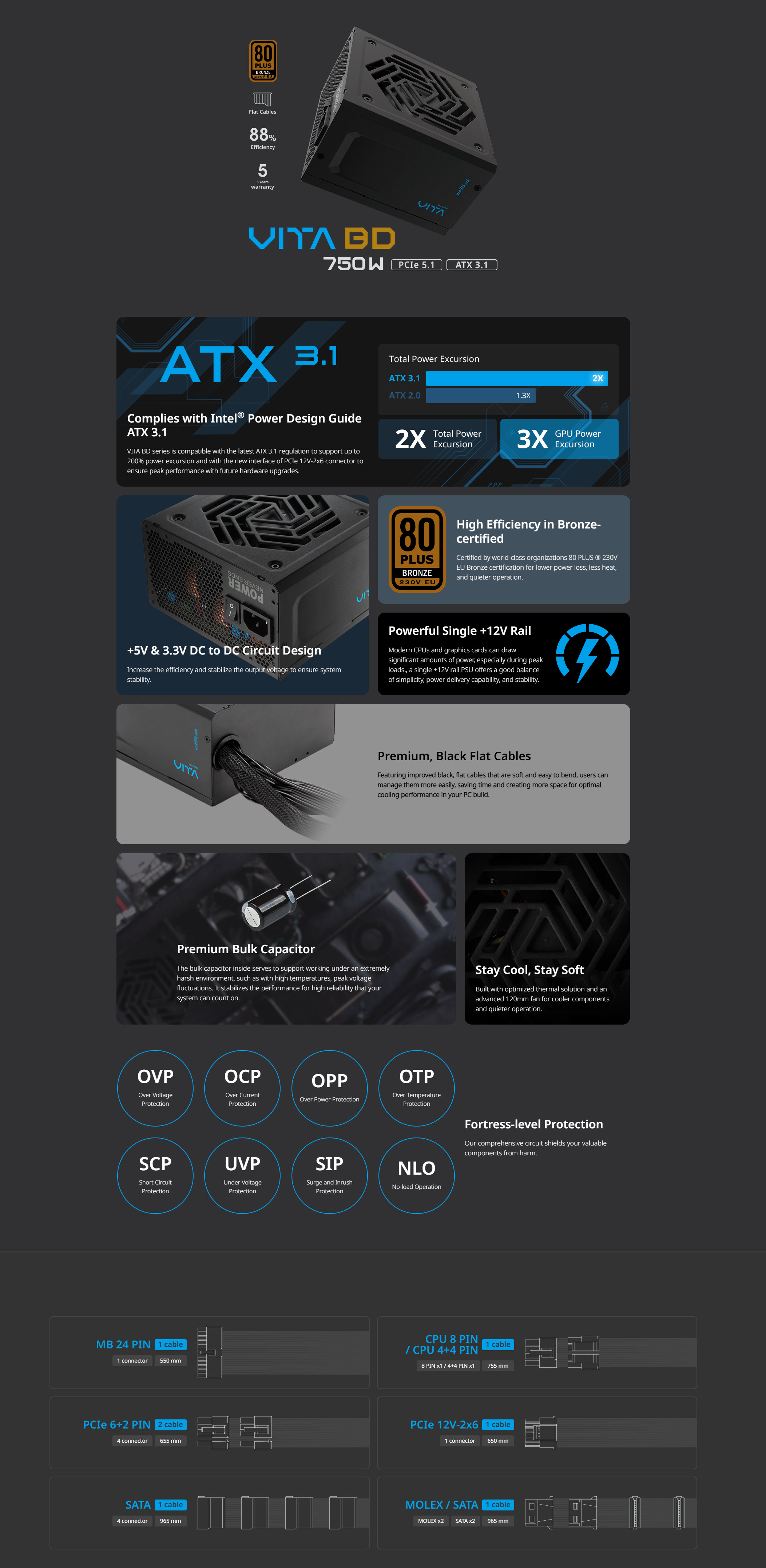 FSP Vita BD 750W 80 Plus Bronze ATX 3.1 Power Supply