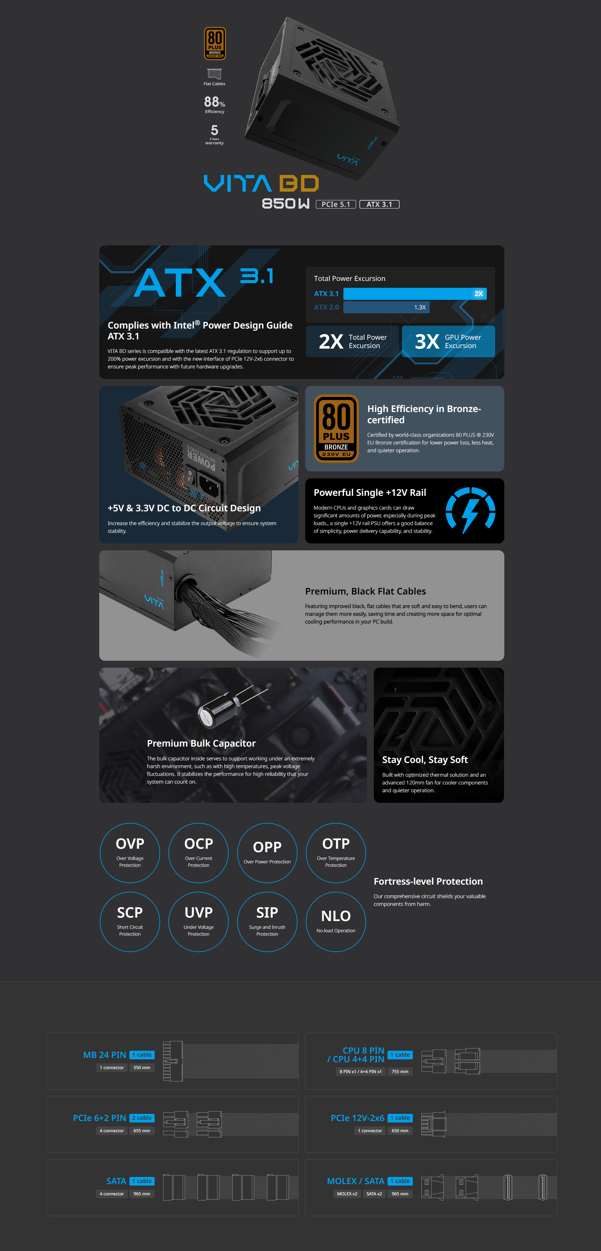 FSP Vita BD 850W 80 Plus Bronze ATX 3.1 Power Supply