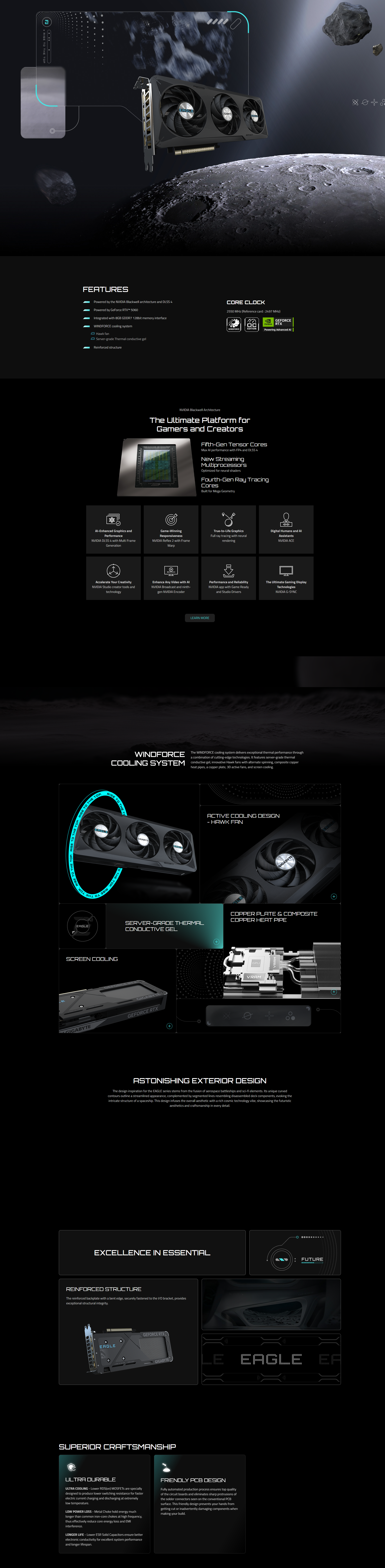 • WINDFORCE cooling system (Hawk fan, Server-grade Thermal conductive gel)