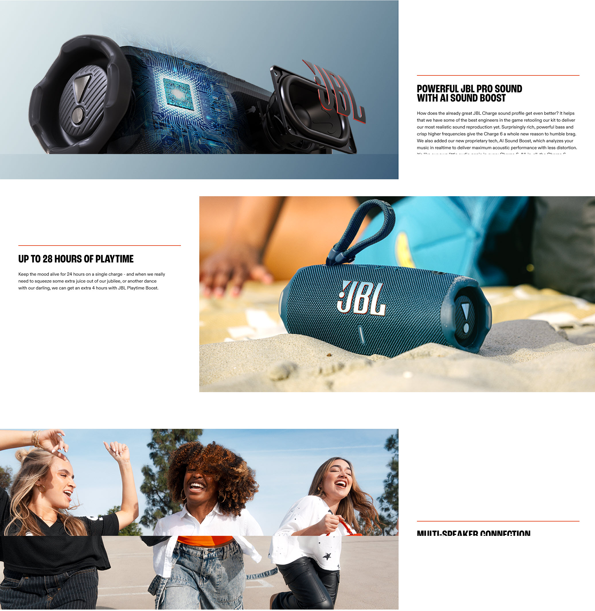 • Improved Battery Life: Longer playback time per charge, surpassing the Charge 5’s 20-hour battery life.