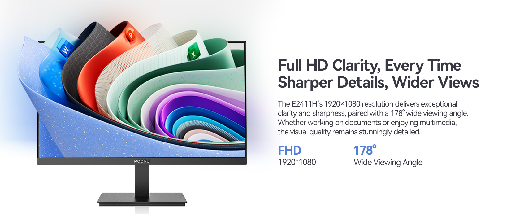 KOORUI E2411H 24″ 120Hz 6ms Office Monitor, IPS Display, FHD Resolution, AMD FreeSync Premium Technology, Flicker-Free, 16.7m Color Display