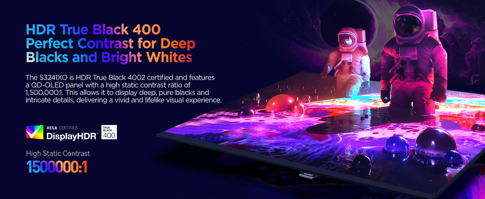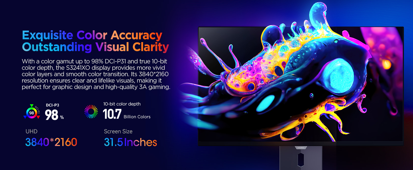 Home » Products » KOORUI S3241XO 32″ 4K 240Hz 0.03ms (GtG) 1.07B(10bit) HDR True Black 400 UHD QD-OLED Gaming Monitor, AMD FreeSync Premium Tilt/Pivot/Swivel/Height Adjustable Stand, 99% DCI-P3, HDR True Black 400, DisplayPort, HDMI, Type-C Gaming Monitor