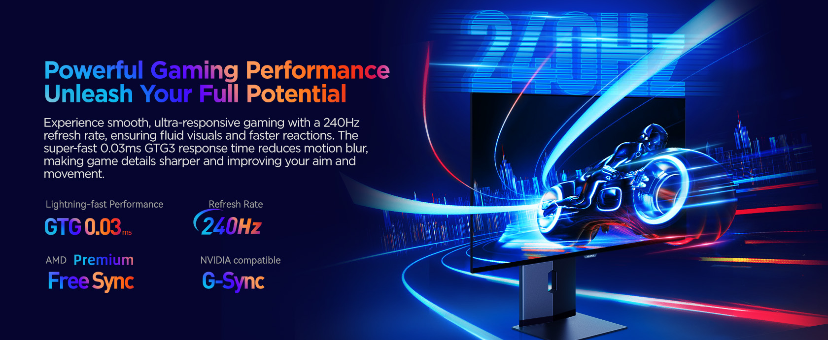 • 240Hz OLED 0.03ms Response: Experience buttery-smooth gameplay with a 240Hz refresh rate and near-instant 0.03ms response time-eliminating ghosting and motion blur for FPS, racing, and esports titles. OLED technology delivers perfect blacks and infinite contrast for immersive visuals. AdaptiveSync eliminates screen tearing and stuttering for seamless gameplay at any framerate.