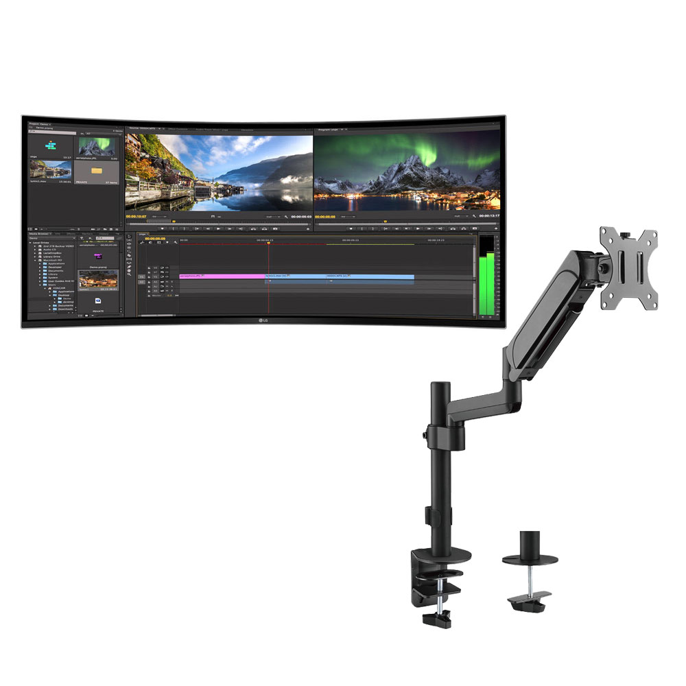 • LG 34CB99-W 34'' IPS WQHD UltraWide™ Curved Monitor with USB Type-C™, USB 3.0 Quick Charge, FreeSync™, Flicker Safe, Black With MXG PMA-12 Single Monitor Pole-Mounted Spring-Assisted Monitor Arm