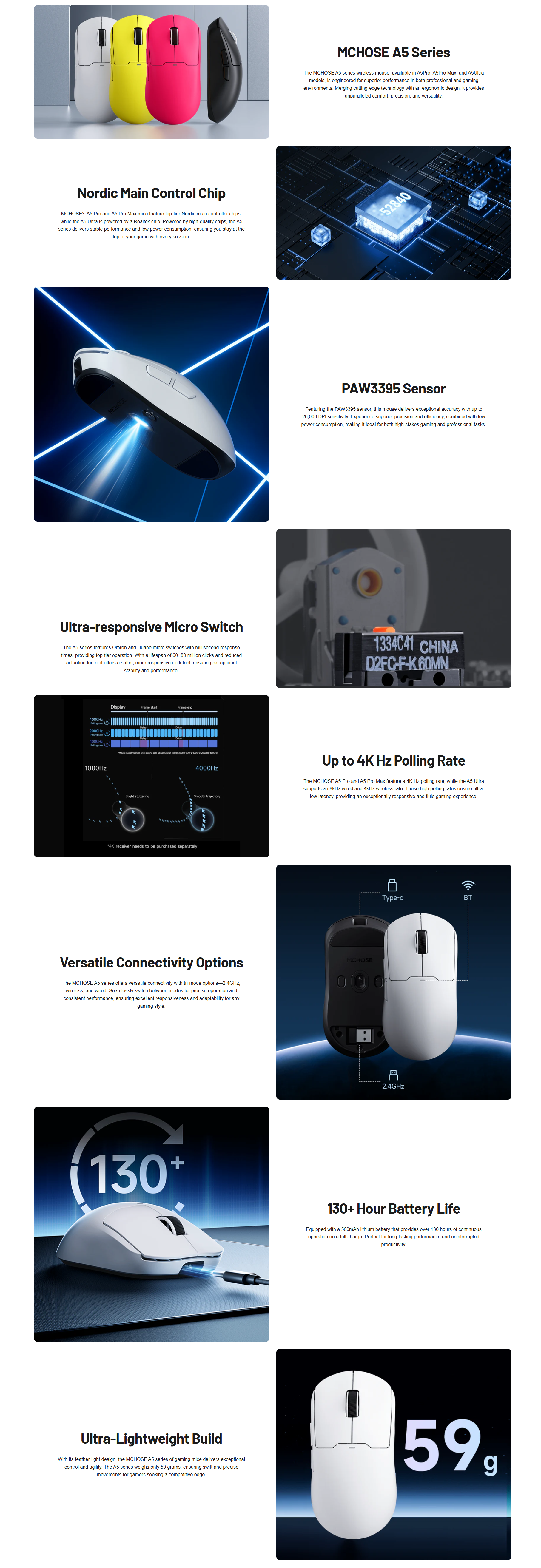 Mchose A5 Pro Max 4K Wireless Gaming Mouse Black