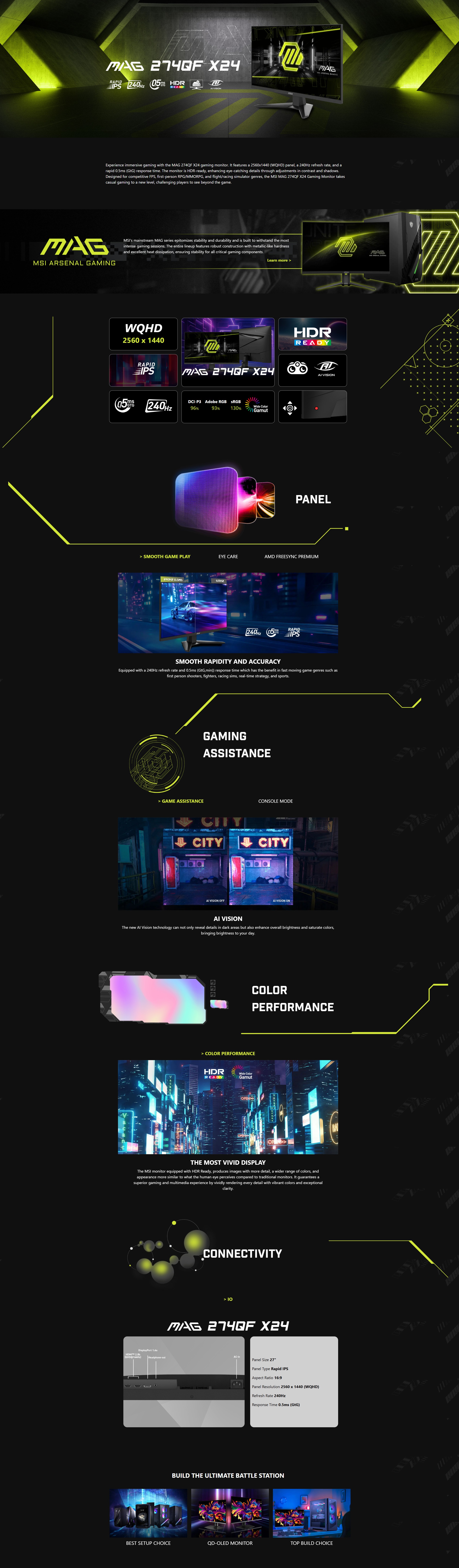 Home » Products » MSI MAG 274QF X24 27″ WQHD 240Hz Rapid IPS Gaming Monitor
