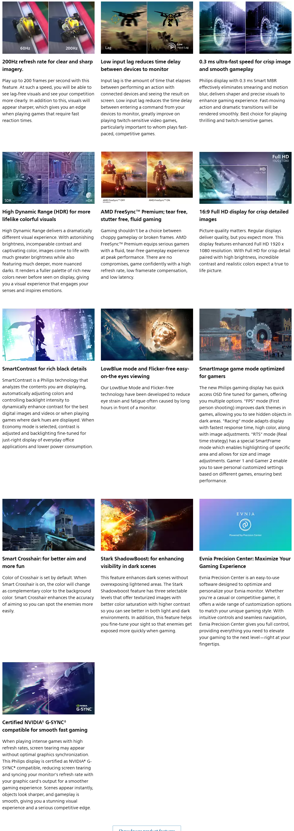 Philips Evnia 27M2N3200FQ 27″ FHD Gaming Monitor Fast IPS, 200Hz, 0.3ms MBR, HDR10, FreeSync Premium & G-SYNC, 120% sRGB, SmartImage Game Modes