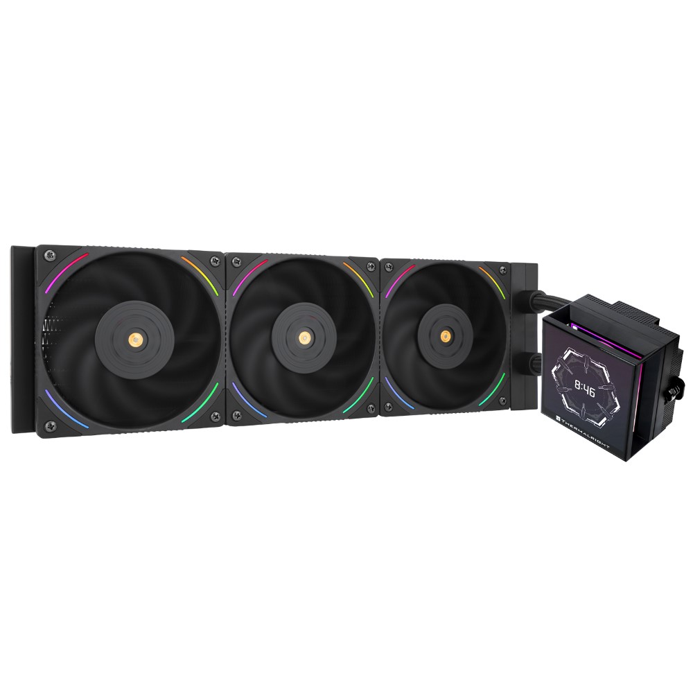 • MAGNETIC FIXED AND CUSTOMIZABLE LCD DISPLAY: Thermalright HV360 ARGB CPU water cooler equipped with a large 3.95″ LCD screen which features sharp 480×480 pixel resolution provides a visually stunning view in PC case.