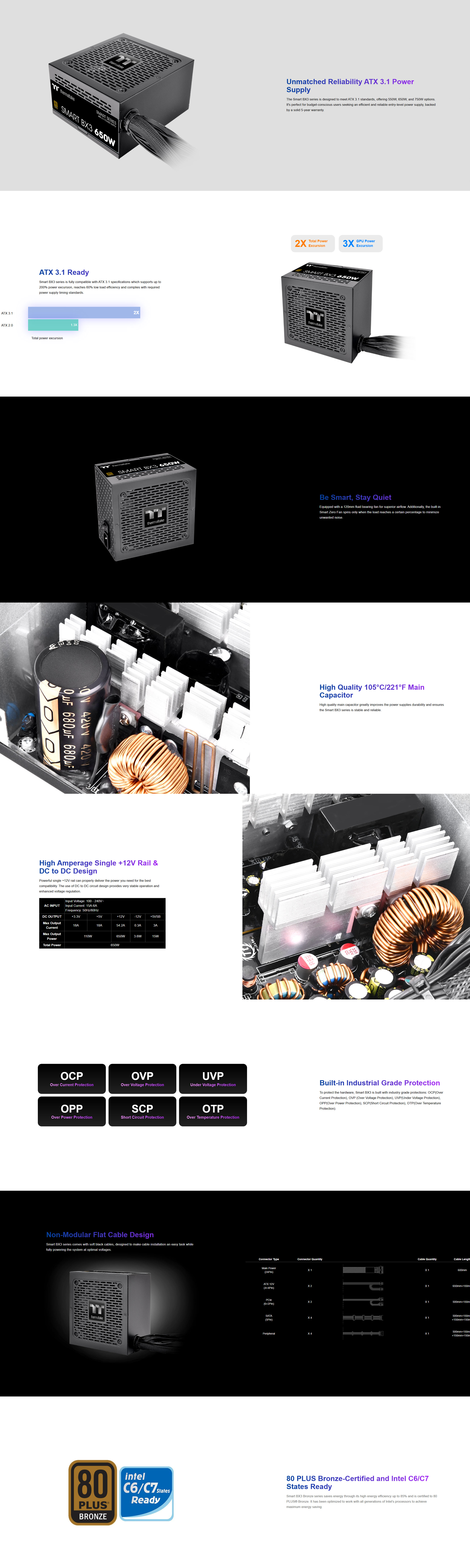 Thermaltake Smart BX3 Bronze 650W – 80 Plus Bronze ATX 3.1 Standard Power Supply Non-Modular