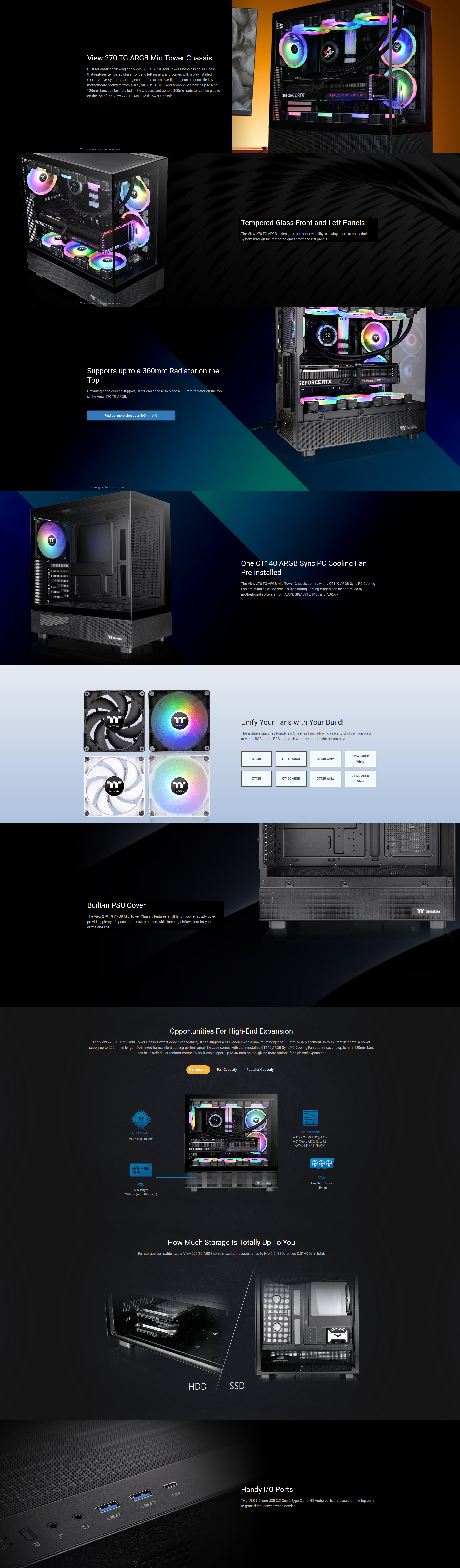 Thermaltake View 270 TG ARGB Mid Tower Gaming Case – Black