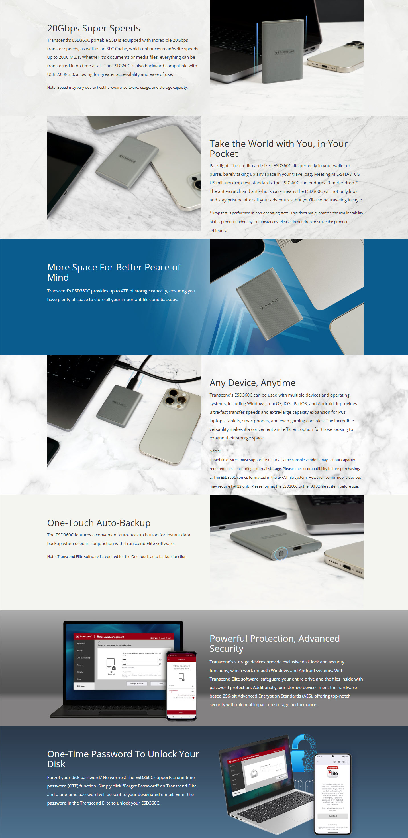 Transcend ESD360C 1TB External SSD Type-C Upto 2,000 MB/s Speed