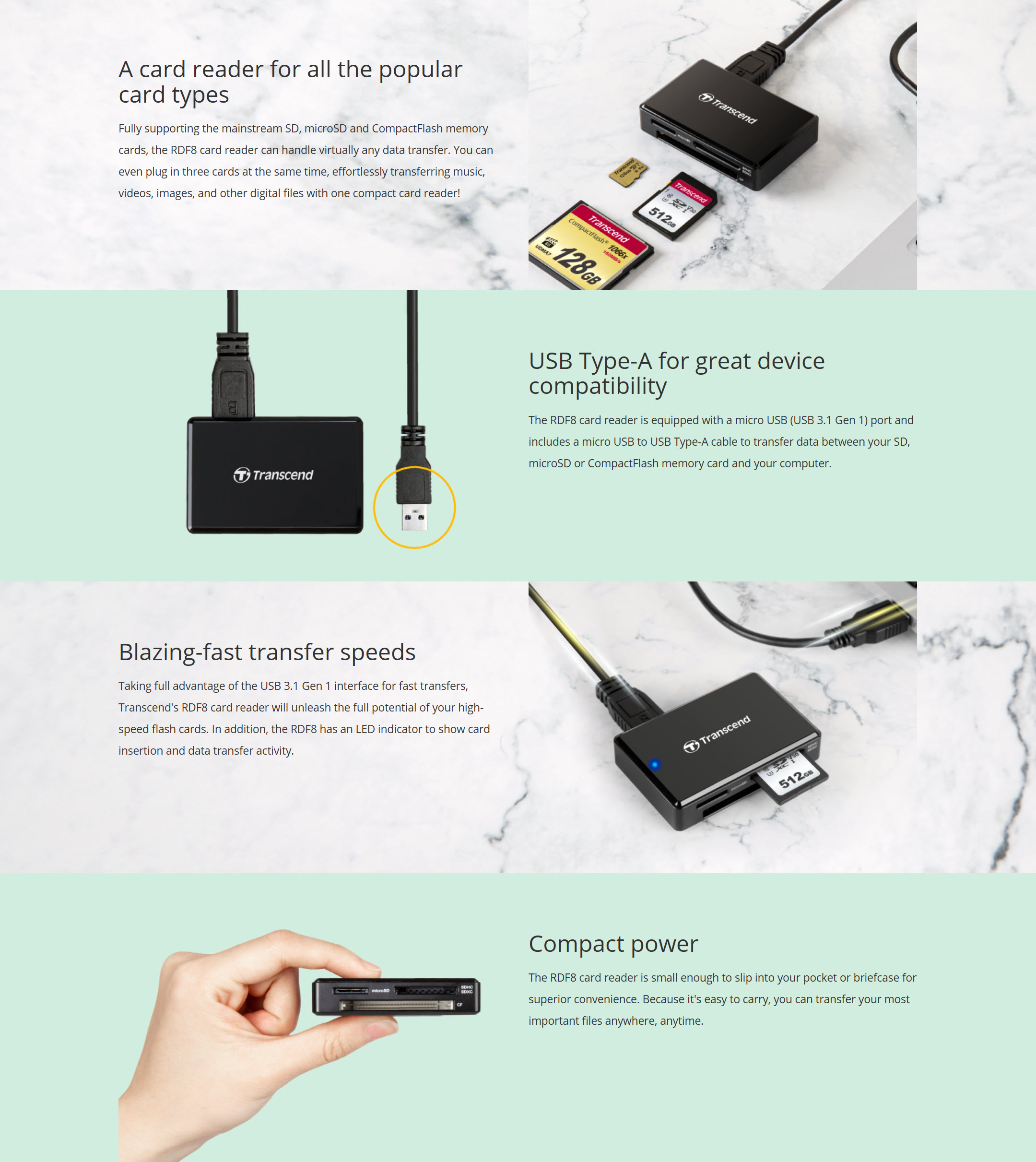 Transcend RDF8 USB 3.1 Gen 1 Card Reader – Black