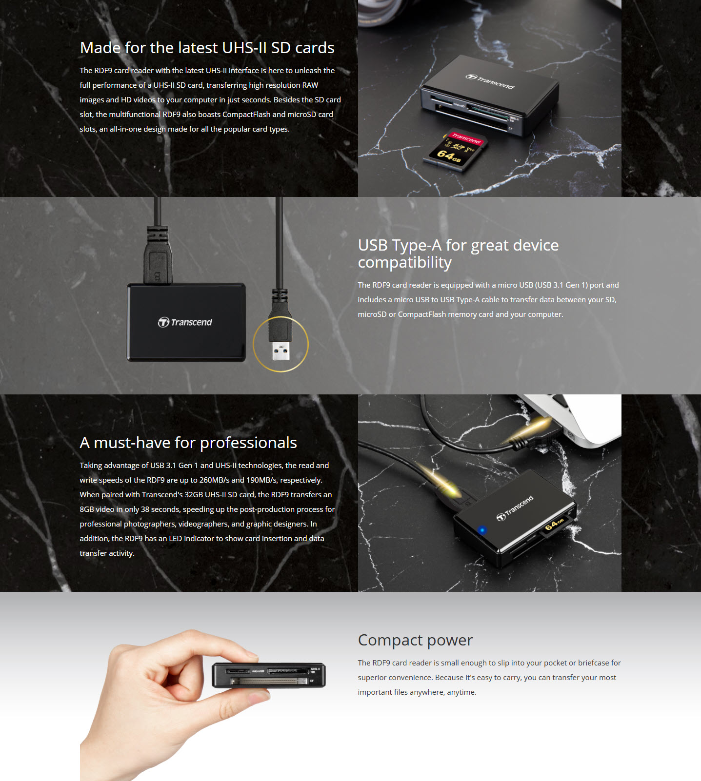 Transcend RDF9K All-in-One USB 3.1/3.0 UHS-II Card Reader